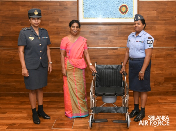 The Chairperson of the SLAF Seva Vanitha Unit, Mrs. Krishanthi Edirisinghe, handed over two (02) commode wheelchairs to deserving family members of service personnel today (19 September 2025) at Air Force Headquarters.