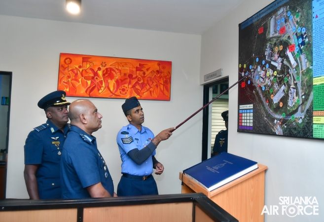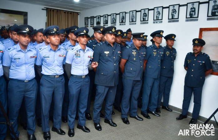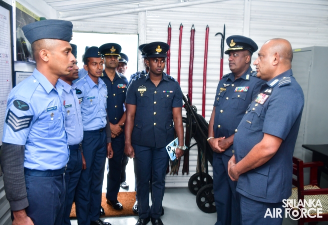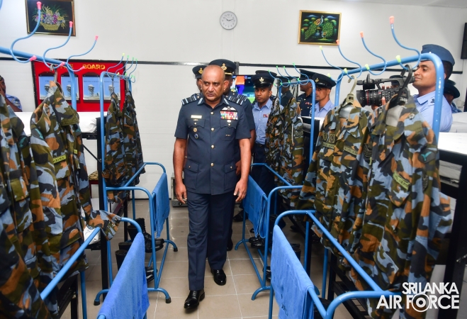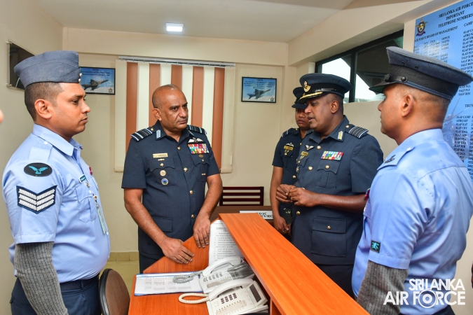 The Commander of the Air Force, Air Marshal Bandu Edirisingh, conducted the Annual Commander’s Inspection at SLAF Station Pidurutalagala today (19 September 2025). The Commander was welcomed by the Commanding Officer, Group Captain Nalin Wewakumbura and was accorded a street line on his arrival.
