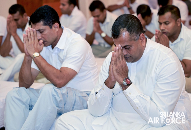 A night-long Pirith chanting ceremony was conducted yesterday (19 September 2025), invoking blessings for the eternal repose of the fallen war heroes and for the protection and wellbeing of all serving members of the Air Force.