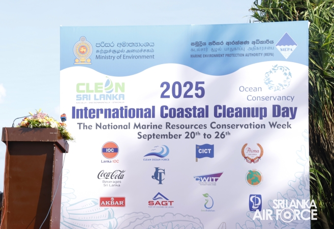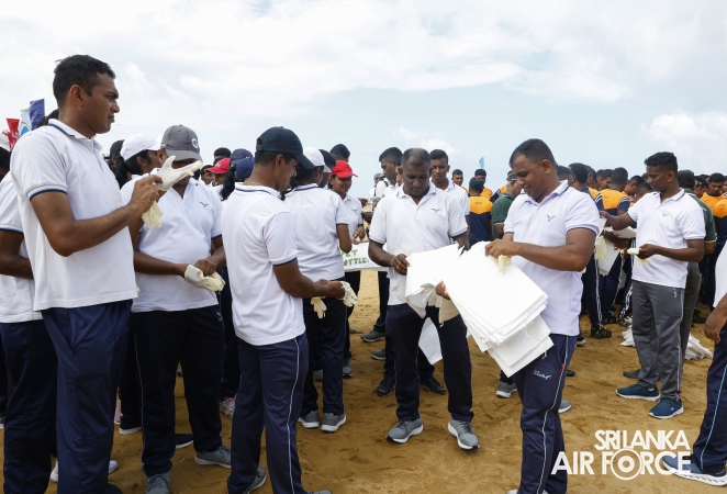 The Ministry of Defence extended its support by deploying personnel from the Tri-Forces, Sri Lanka Coast Guard and the Civil Security Department for the cleanup drive. The Sri Lanka Air Force, represented by personnel from SLAF Base Ratmalana, actively took part in the initiative, joining other services and volunteers in the coastal conservation effort. Simultaneous cleanup activities are also being organized throughout 14 coastal districts during the week from 20 to 26 September 2025.