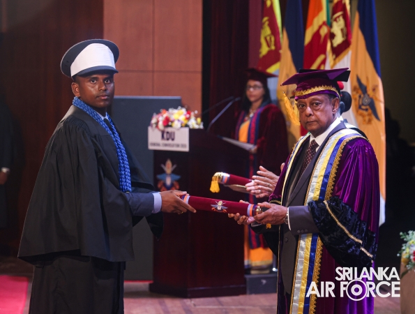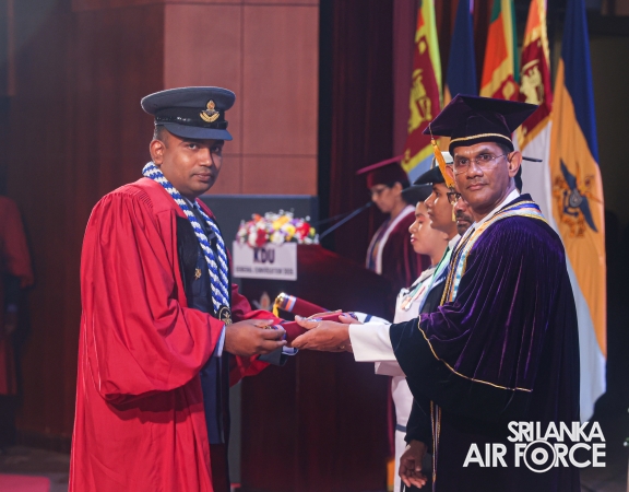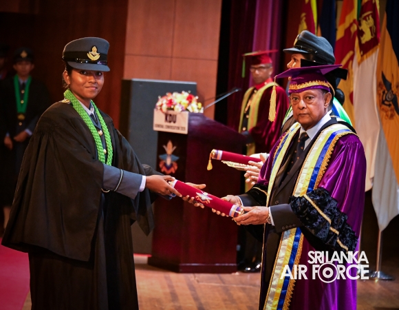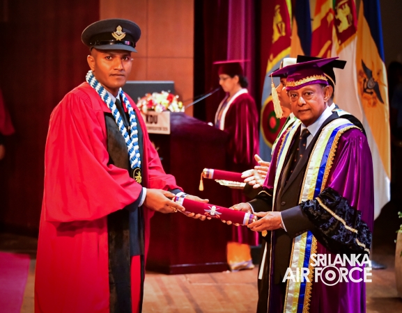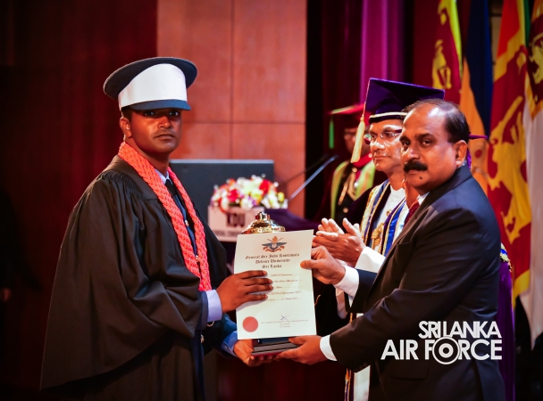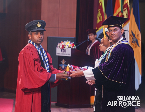 In recognition of exceptional achievements, the Deputy Minister of Defence presented special awards to Officer Cadet YLDH Yakandawala, who was adjudged the Best Student Officer, and to Flying Officer KMLL Kmarasinghe, who received the award for Best Overall Performance in Academic Studies in the Social Science Stream.