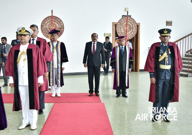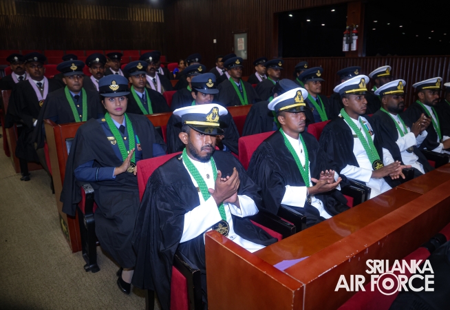 The second day graduation session, held on 14 October 2025, was honoured by the presence of the Commander of the Air Force, Air Marshal Bandu Edirisinghe. Ambassadors and High Commissioners, Secretaries of other ministries, Chancellor of General Sir John Kotelawala Defence University, General Shantha Kottegoda, Commander of the Army, Lieutenant General Lasantha Rodrigo, Commander of the Navy, Vice Admiral Kanchana Banagoda, Vice Chancellor, Rear Admiral Dammika Kumara, members of the Air Force Board of Management, Inspector General of Police and other Heads of the Security Sector, were among the distinguished gathering.