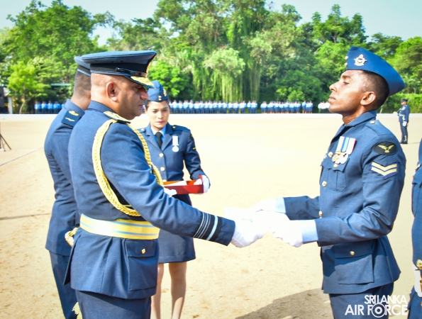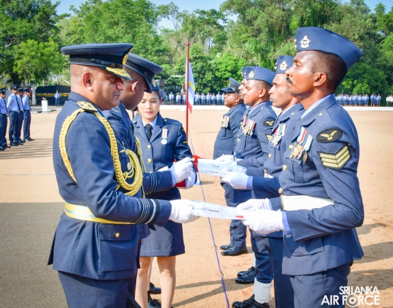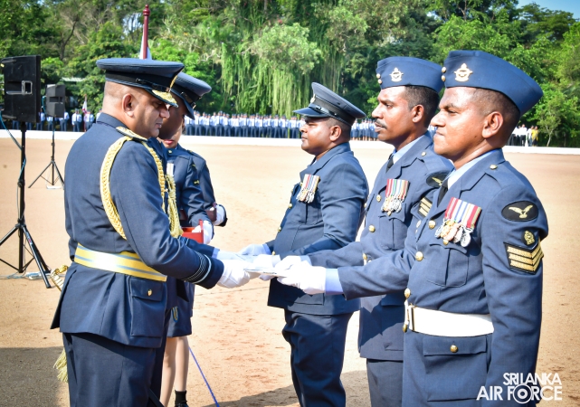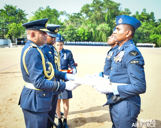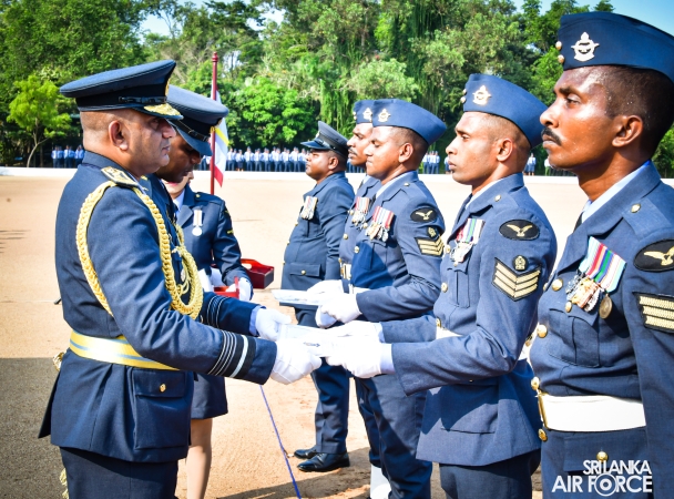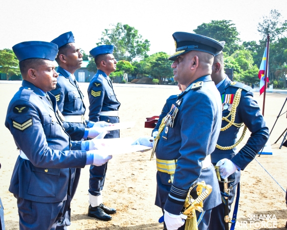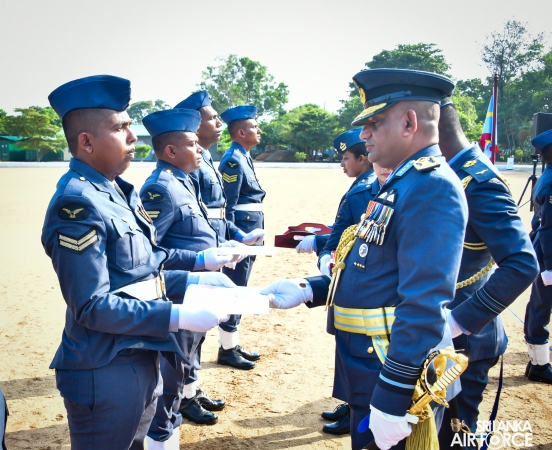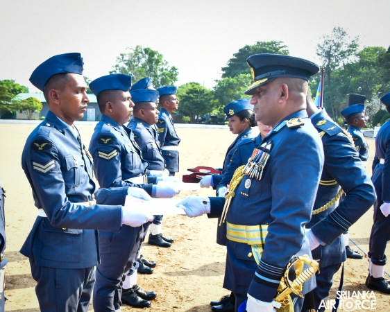The Commander reviewed the Commander’s Inspection Parade commanded by the Base Commander of SLAF Base Ratmalana, Air Commodore Amitha Jayamaha and awarded Certificates of Commendation to the following service personnel in recognition of their outstanding contributions made to the SLAF.