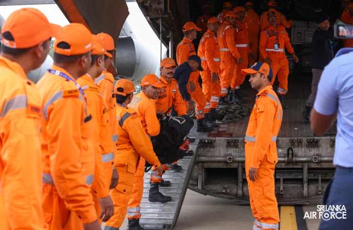 An IL-76 aircraft of the Indian Air Force (IAF) landed in Sri Lanka today (29 November 2025), carrying 80 personnel from the National Disaster Response Force (NDRF) including four females, along with four sniffer dogs. The aircraft also brought essential disaster relief supplies and rescue equipment to support ongoing operations.