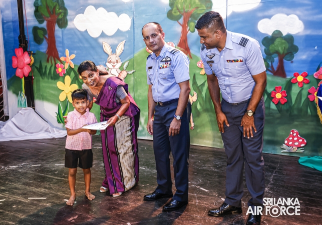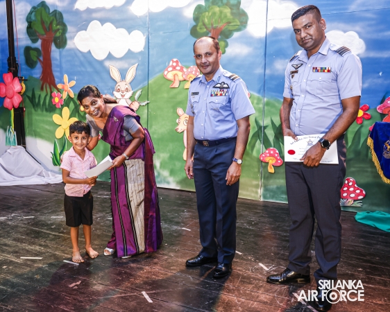 The Commanding Officer of SLAF Station Sri Jayewardenepura, Air Commodore Buddhika Piyasiri, Officers of the station, and parents of the children participated in the event, adding warmth and encouragement to the young performers.