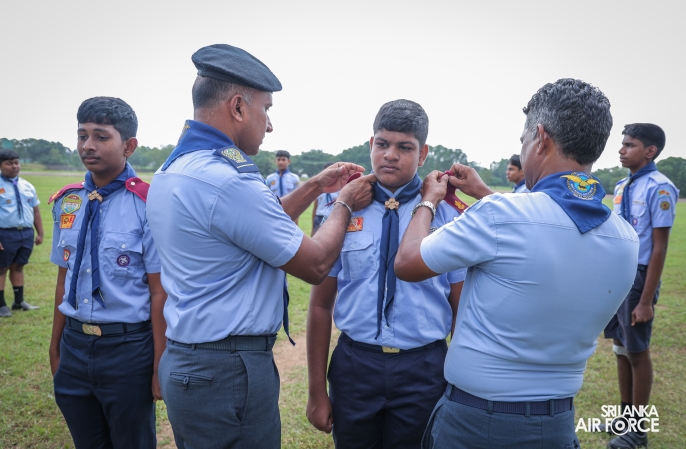 The ceremony was held at SLAF Base Anuradhapura under the direction of Assistant Headquarters Commissioner, Group Captain Krishantha Perera, with the assistance of Assistant District Commissioner and Air Scout Master – Anuradhapura, Ex Warrant Officer UI Karunathilaka.