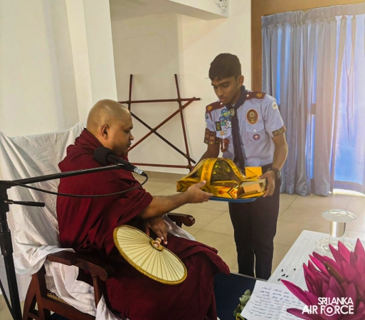 A Bana preaching ceremony was conducted today (10 January 2026) for No. 57 Air Scout Troop at the Air Scout Headquarters, SLAF Guwanpura, to invoke blessings for the New Year. The sermon was delivered by the Most Venerable Pallemulle Soratha Thero, the resident monk of the International Vipassana Meditation Centre, Colombo 07.
