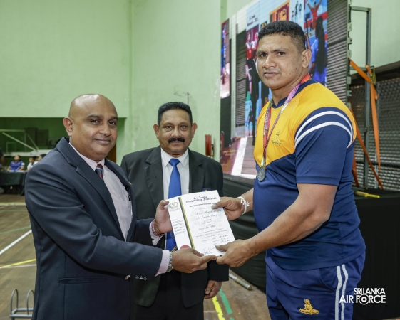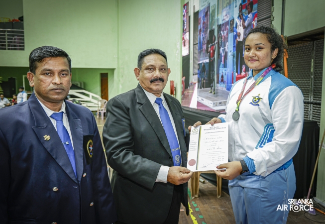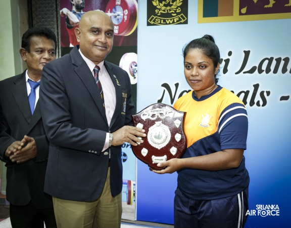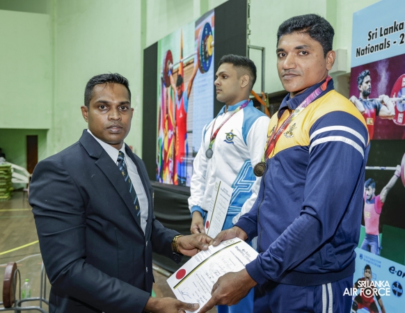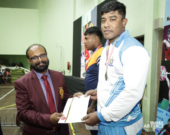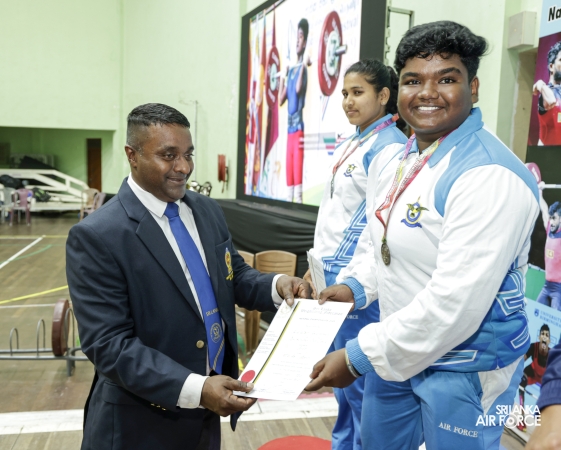 The awards ceremony was held at the same venue with the participation of the President and other officials of the Sri Lanka Weightlifting Federation, Chairman SLAF Weightlifting Group Captain Sanoj Jayaratne and distinguished guests at the Torrington Indoor Stadium Colombo.