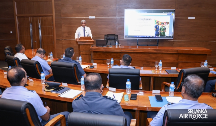 The initiative was conducted in coordination with the Office of the Deputy Minister of Defence and the Ministry of Industry and Entrepreneurship Development, under the guidance of Major General Aruna Jayasekara (Retd), Deputy Minister of Defence. It is intended to provide SLAF personnel approaching retirement with information on entrepreneurship, self-employment opportunities and related regulatory frameworks.