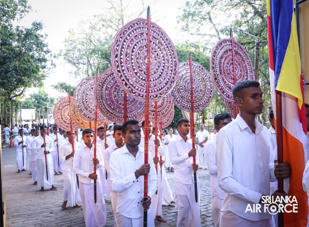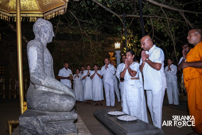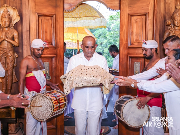 The Sri Lanka Air Force, which is gearing up to celebrate its 75th anniversary as the ‘Guardians of the Skies' conducted the ‘Pichcha Mal Pooja' at Kelaniya Raja Maha Viharaya for the ninth consecutive time. The event was organized under the auspices of the Commander of the Air Force, Air Marshal Bandu Edirisinghe today evening (24 February 2026) by SLAF Headquarters Sri Jayewardenepura to invoke blessings for the SLAF personnel and the entire Air Force. The Chairperson of the SLAF Seva Vanitha Unit, Mrs. Krishanthi Edirisinghe also participated in the event.