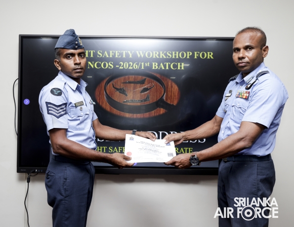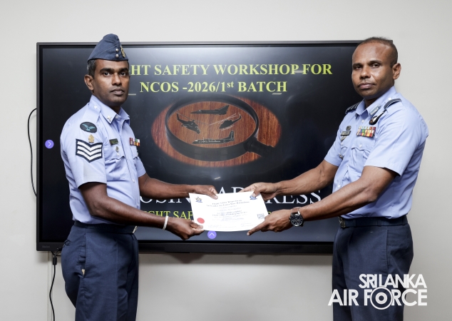 The 22nd consecutive Flight Safety Workshop for Non-Commissioned Officers (NCOs), marking the first batch for 2026, was recently concluded at the No. 61 Flight Lecture Hall of SLAF Base Ratmalana. The five-day programme saw the participation of 36 NCOs representing all Directorates.