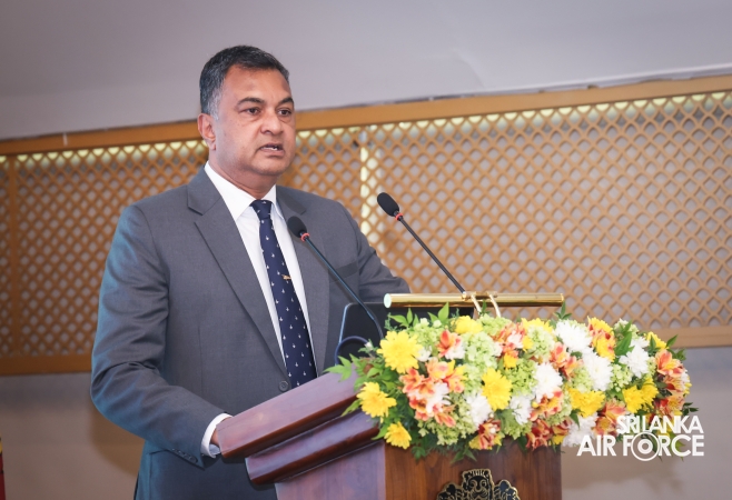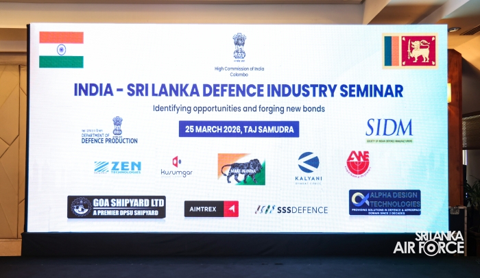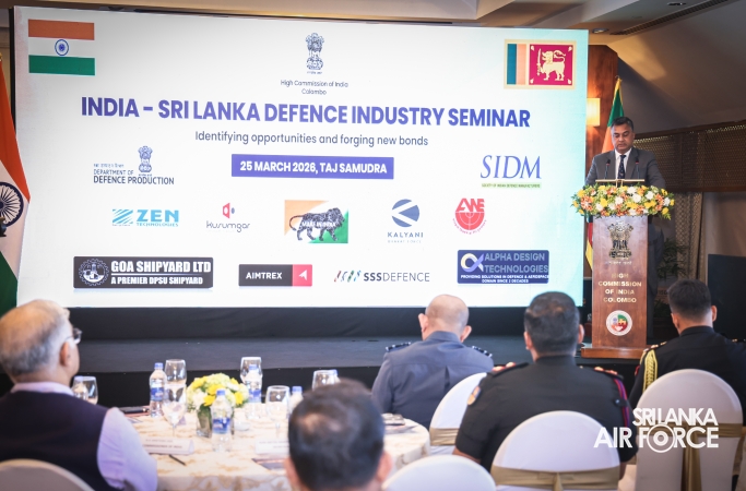 The Commander of the Air Force, Air Marshal Bandu Edirisinghe, attended the India–Sri Lanka Defence Industry Seminar held today (25 March 2026) at the Taj Samudra Hotel in Colombo. The event was graced by the Secretary to the Ministry of Defence, Air Vice Marshal Sampath Thuyacontha (Retd), as the chief guest.