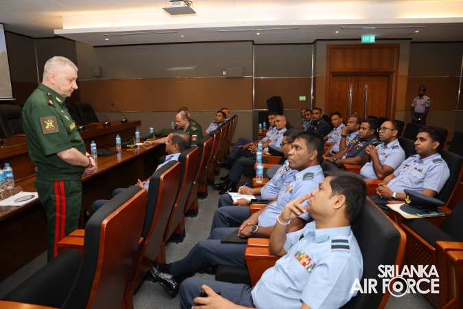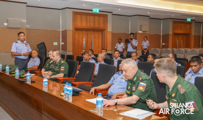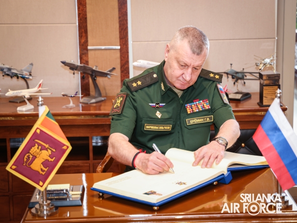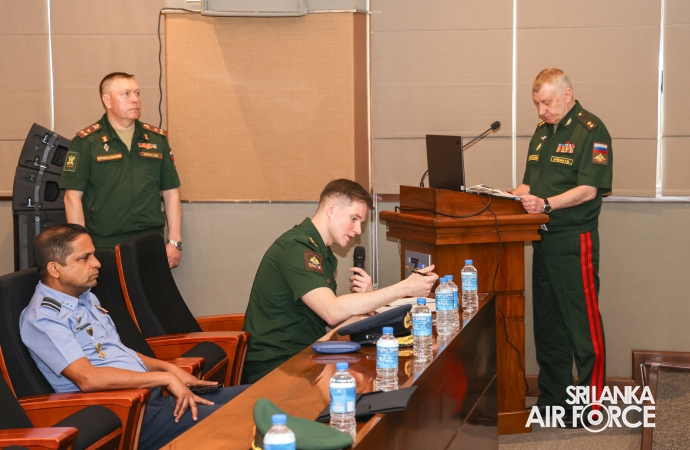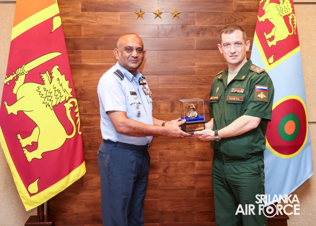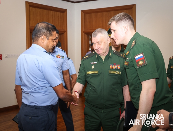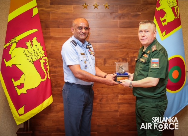 The head of the delegation, Lieutenant General Gleb Voeremin, along with the members, was accompanied by the Military, Air and Naval Attaché of the Embassy of the Russian Federation in Sri Lanka, Colonel Sergei N. Beliankin, when they called on the Commander of the Air Force, Air Marshal Bandu Edirisinghe. Symbolic mementos were exchanged following cordial discussions to mark the occasion.