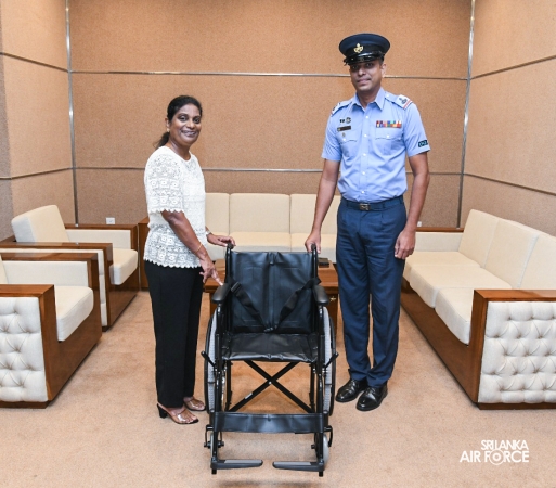 The Chairperson of the SLAF Seva Vanitha Unit, Mrs. Krishanthi Edirisinghe handed over Two (02) Wheel Chairs to deserving family members of service personnel today (27 January 2026) at Air Force Headquarters in Sri Jayewardenepura.