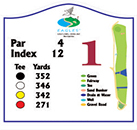 | A fairly straightforward drive and pitch will set up par. The trees on the fairway must be avoided, and the approach to this elevated green calls for good judgement of distance. To fall short of the green will almost certainly mean a dropped stroke. | ||||||||||||||||||