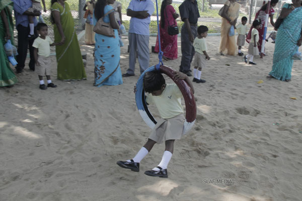 Mrs. Neelika Abeywickrama, the Chairperson of the Seva Vanitha Unit of SLAF, participated in the inauguration ceremony of the first Tamil/ English medium pre-school on 15th January 2013. This is the first of its kind opened in the history of the Sri Lanka Air Force and was initiated by the SLAF Unit Batticaloa. The Director Welfare, Air Vice Marshal WA Silva and Air Commodore MLK Perera were also present at the ceremony. As part of the Nation Building Programe, the Commanding Officer of the SLAF Unit, Wing Commander WMAB Wewegama initiated this community project which was a long unresolved necessity of the area. The enrollment of the first child was done by the Chairperson of the Seva Vanitha Unit Mrs. Neelika Abeywickrama and books and uniforms to the kids of the pre school were also distributed.