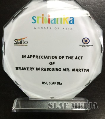An act of bravery of SLAF Member, Corporal Wijewardene JTBG was appreciated at the Sri Lanka Tourism Promotion Bureau in connection with rescuing Mr Martyn, a Dutch national on 27 Feb 15.