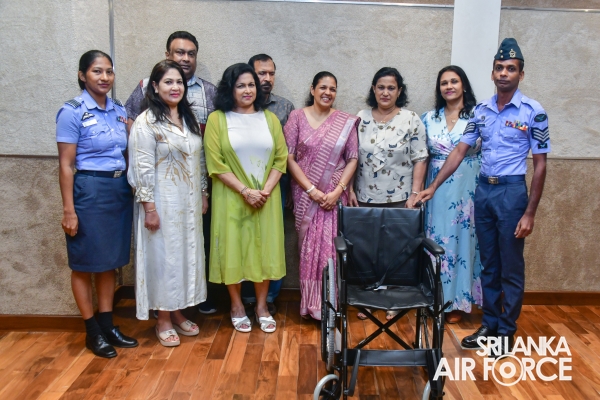 A special wheelchair donation programme was organized by the Seva Vanitha Unit at the SLAF Headquarters in Sri Jayewardenepura Kotte yesterday (02 April 2024). This significant event was made possible through the generous contributions of esteemed donors Mrs. W.K. Purna Priyadharshini, Mr. Jagath Sumathipala and Mrs. Samantha Sumathipala, who collaborated with the Seva Vanitha Unit by donating ten wheelchairs for the "Husma Plan" initiative. These wheelchairs were intended for distribution among deserving family members of SLAF personnel.