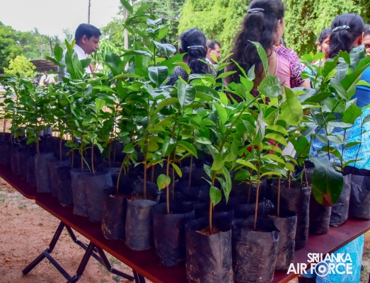 The saplings were arranged by the SLAF Agro Unit, including varieties of Anoda, Guava, Lemon, Rose Apple, Tamarind, Wood Apple, Goraka, Mango, Kohomba, Coconut, Jackfruit, Kubuk, Passion Fruit and more. The programme was successfully conducted with the participation of Director Agriculture and Welfare Projects, Air Commodore Erandika Gunawardhane, Deputy Commandant SLAF Academy China Bay, Group Captain Asela Kuruwita. Further, the Chief Secretary of the Eastern Province, Mr. RMPS Rathnayaka, the Secretary of Agriculture Eastern Province, Mr. IJK Muthubanda and the Provincial Director of Agriculture, Mr. MBA Kalees, were also present for the occasion.