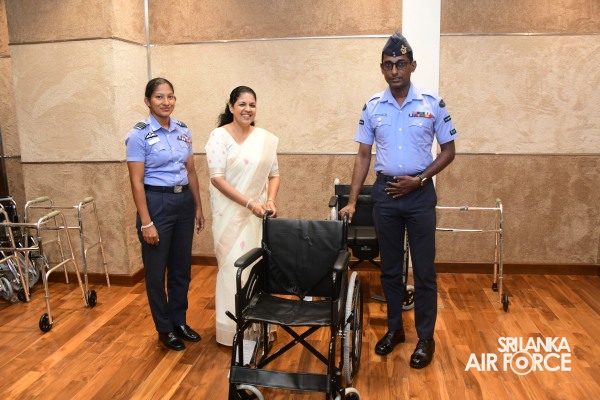 The event aimed to provide mobility aids to the needy family members of SLAF service personnel. Three walkers and seven wheelchairs were donated during the programme. Additionally, a special donation of a commode wheelchair was made to Leading Aircraftman Kumara, who was medically discharged from the service in 2019 following an accident he encountered in 2014. This commode wheelchair was donated in memory of Mr. Kamal Ranathunga by his wife, Mrs. Dilma Ranathunga and their daughter, Miss. Kameesha Ranathunga.