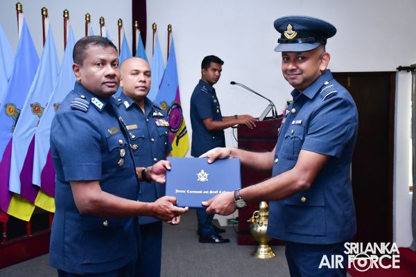 Graduation ceremony marked the end of 14 weeks extensive academic endeavour attended by 27 officers from Sri Lanka Air Force and one officers from Sri Lanka Navy. Among them the award for the Best All-Round Officer of the course was secured by Flight Lieutenant RT Weerawardana The Junior Command and Staff College is accredited to the General Sir John Kotelawala Defence University and the officers who fulfill the required criteria will be offered a Post Graduate Diploma in Defence Management.