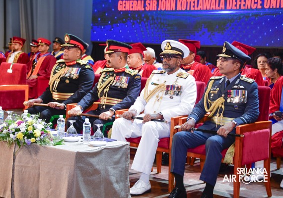 The 35th General Convocation of the General Sir John Kotelawala Defence University concluded today (15 October 2024) at the BMICH, with the Secretary to the Ministry of Defence, Air Vice Marshal Sampath Thuyacontha (Retd), attending as the Chief Guest. During his address the Defence Secretary reflected on the nation's experiences with both conflict and the healing power of peace. He urged the graduates to carry forward the lessons of the country’s past as they embark on the next phase of their journey. He reminded them to never forget the value of peace, stability, and cooperation in shaping the future. This year's convocation, parchments were awarded PhD, Master’s Degree and Postgraduate Diploma holders from the Faculty of Graduate Studies, as well as Bachelor’s Degree holders from various faculties of the University.