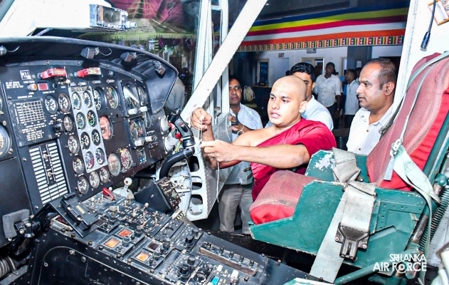The ceremony commenced with a formal procession, during which the sacred Karaduwa (reliquary) was escorted to the No. 7 Helicopter Squadron hangar. The reliquary was respectfully placed in the decorated Pirith Mandapaya by the Commanding Officer of the No. 7 Helicopter Squadron, Group Captain Kanchana Liyanarachchi.