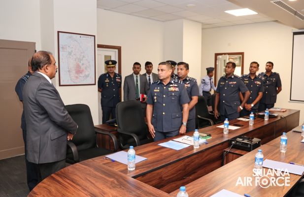 The visit continued with an overview briefing on the Sri Lanka Air Force, delivered by the Base Commander of SLAF Base Ratmalana, Air Commodore Asela Jayasekara. Subsequently, the Deputy Minister of Defence engaged in a discussion with SLAF Base Commanders and Station Commanding Officers via an online platform. This was followed by a meeting with the members of the Colombo Air Symposium (CAS) Secretariat, during which key operational and administrative matters were deliberated.