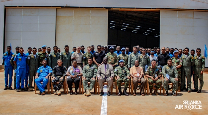 The newly constructed hangar facility at the Sri Lanka Aviation Unit, MINUSCA, Central African Republic, was officially declared open by the Head of Office, Sector East, Mr. Bara Dieng, yesterday (03 March 2025). The facility was then formally handed over to the Contingent Commander of the 10th SLAF Aviation Contingent, MINUSCA, Group Captain Uditha De Silva.