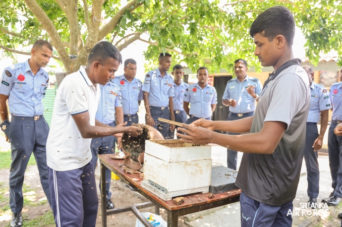 The SLAF Agro Unit conducted a one-day Beekeeping awareness programme yesterday (21 April 2025) at the SLAF Agro Unit Training Cell. The event was held under the supervision of the Commanding Officer of the Agro Unit, Group Captain Daminda Samarathunga, with the aim of educating and encouraging SLAF service personnel in the field of beekeeping.