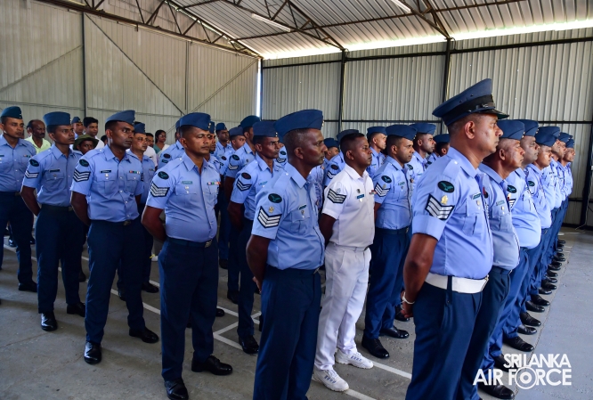 The Commander reviewed the Commander’s Inspection Parade, which was commanded by the Commanding Officer. During the parade a Certificate of Commendation was awarded to the Warrant Officer KK Neranjan (Operations Ground SP I) in recognition of his exceptional contribution to SLAF Station Weerawila.