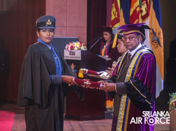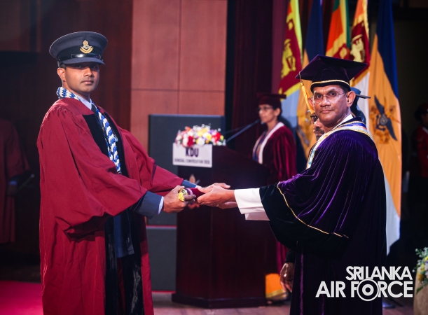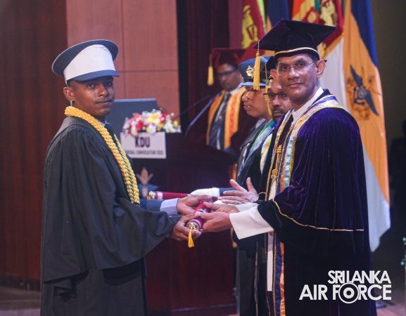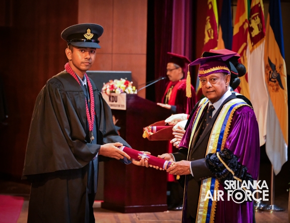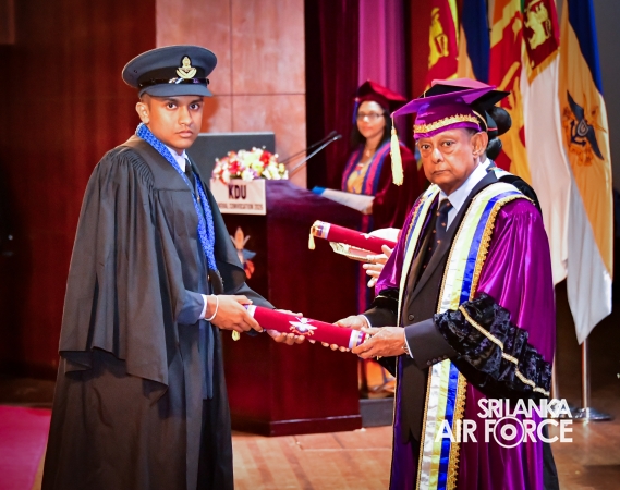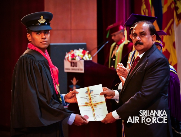 In recognition of exceptional achievements, the Deputy Minister of Defence presented special awards to Officer Cadet YLDH Yakandawala, who was adjudged the Best Student Officer, and to Flying Officer KMLL Kmarasinghe, who received the award for Best Overall Performance in Academic Studies in the Social Science Stream.