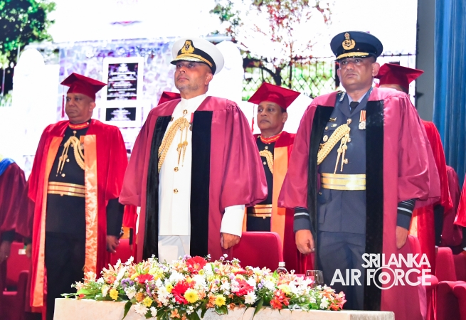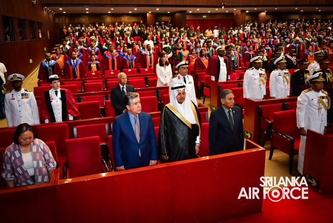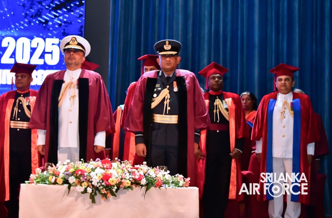 The second day graduation session, held on 14 October 2025, was honoured by the presence of the Commander of the Air Force, Air Marshal Bandu Edirisinghe. Ambassadors and High Commissioners, Secretaries of other ministries, Chancellor of General Sir John Kotelawala Defence University, General Shantha Kottegoda, Commander of the Army, Lieutenant General Lasantha Rodrigo, Commander of the Navy, Vice Admiral Kanchana Banagoda, Vice Chancellor, Rear Admiral Dammika Kumara, members of the Air Force Board of Management, Inspector General of Police and other Heads of the Security Sector, were among the distinguished gathering.