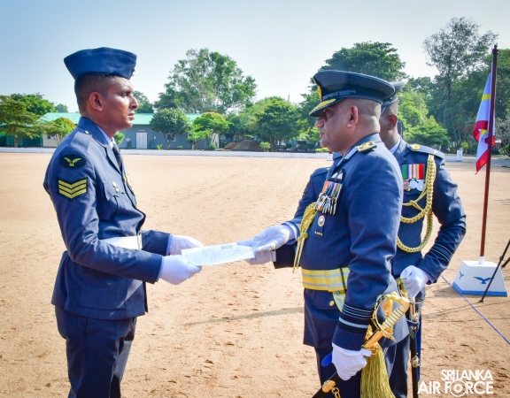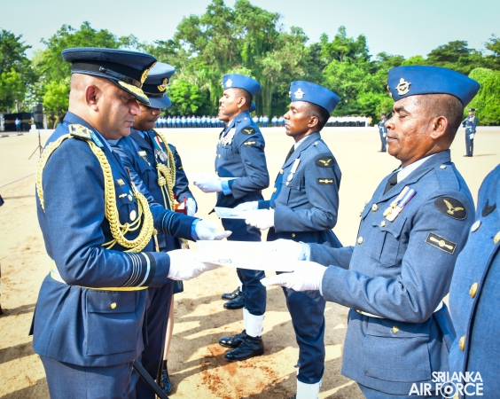 The Commander reviewed the Commander’s Inspection Parade commanded by the Base Commander of SLAF Base Ratmalana, Air Commodore Amitha Jayamaha and awarded Certificates of Commendation to the following service personnel in recognition of their outstanding contributions made to the SLAF.