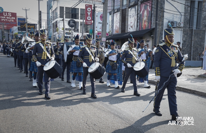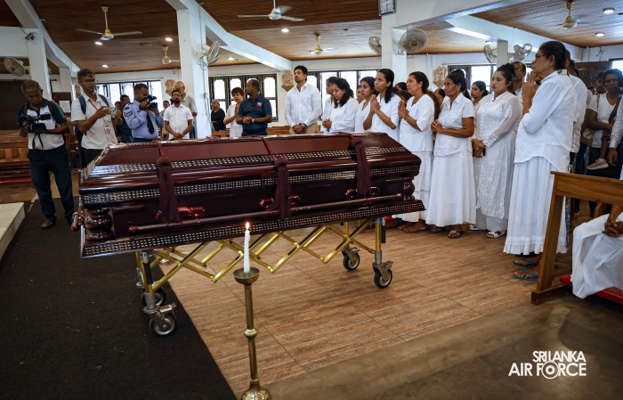Later, during the ceremonial funeral parade, the Commander of the Air Force, Air Marshal Bandu Edirisinghe, the Chief of Staff, Air Vice Marshal Lasitha Sumanaweera, Deputy Chief of Staff, Air Vice Marshal Damian Weerasinghe, members of the Air Force Board of Management and the SLAF community paid their final respects to the late Group Captain Nirmal Siyambalapitiya, honouring his distinguished service, professionalism and devotion to duty.