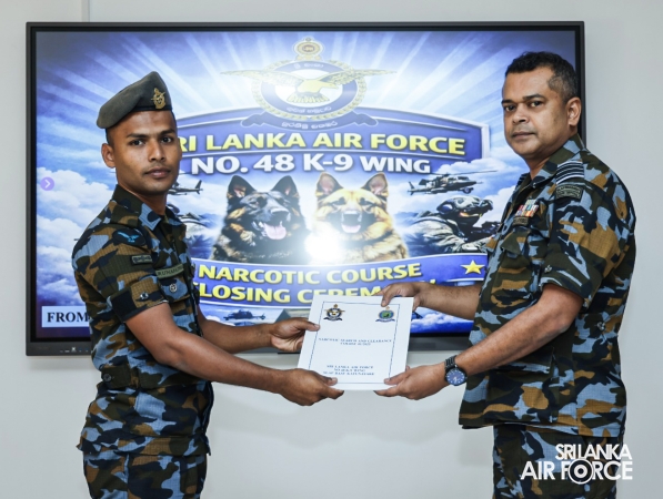 The certificate awarding ceremony to mark the successful completion of the Narcotic Search and Clearance Course by Military Working Dogs and their handlers was held at No. 48 K-9 Wing, SLAF Base Katunayake, today (23 December 2025).