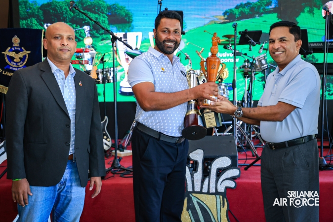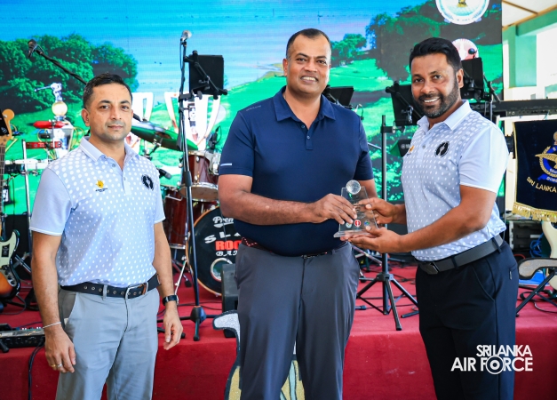 The Best Total Net Score in the Six Hidden Holes competition segment was achieved by Wing Commander Lakmal Gunewardene (Retd) and Group Captain Prabath Wijekoon received the Commander’s Island Green Award for the 2025 year’s Eagles' Monsoon Cup iteration.