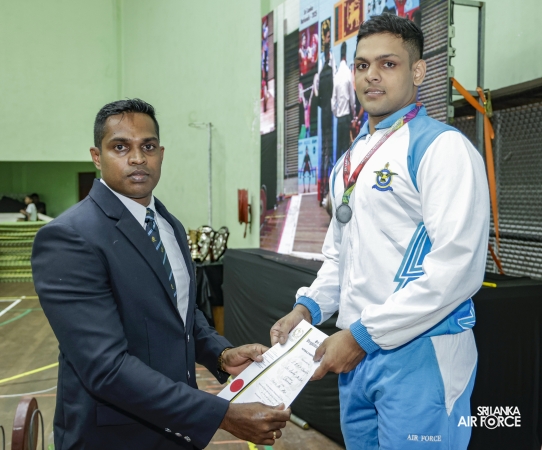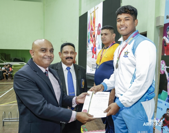 The awards ceremony was held at the same venue with the participation of the President and other officials of the Sri Lanka Weightlifting Federation, Chairman SLAF Weightlifting Group Captain Sanoj Jayaratne and distinguished guests at the Torrington Indoor Stadium Colombo.