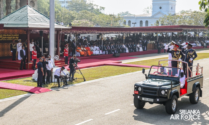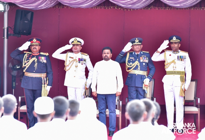 The arrival of the President of the Democratic Socialist Republic of Sri Lanka, His Excellency Anura Kumara Dissanayake, marked the commencement of the celebrations. The Prime Minister, Speaker of Parliament, Ministers, Chief Justice, the Governor of the Western Province, Deputy Ministers, Secretary to the Ministry of Defence, Tri-Services Commanders, Inspector General of the Police, Diplomats and other distinguished dignitaries graced the occasion.
