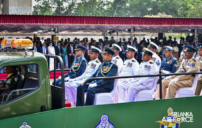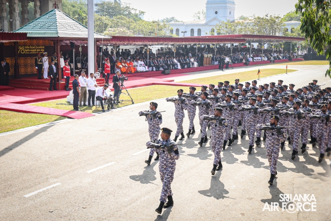 The overall operations commander on the ground during the ceremonial march past was Director General Ground Operations, Air Vice Marshal Ruwan Chandima and the overall parade coordinator was Wing Commander Asela Vithana, Staff Officer Ground VI of the Directorate of Ground Operations.