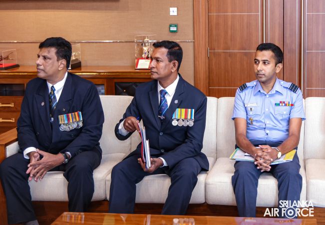 The incumbent Hon. President of the Association, Air Vice Marshal Hemantha Soysa (Retd) , Hon. First Vice President, Air Vice Marshal LMSK Leelarathne (Retd) and Hon. Second Vice President Air Commodore Amal Wimalaratne (Retd) and other members of the association visited the Commander and had discussions on matters of mutual interest and also on future measures to develop even better interaction between the Association and the SLAF.