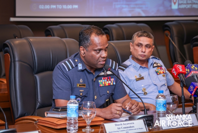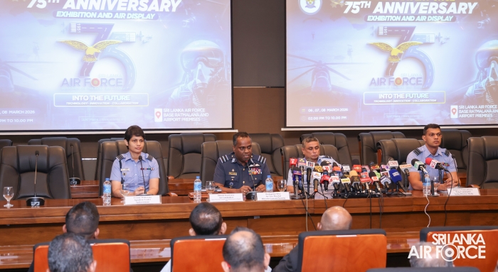 The second briefing was on the SLAF 75th Anniversary Celebration Exhibition and Air Display, which will be held on 7, 8 and 9 March 2026 at SLAF Base Ratmalana. The briefing was chaired by Director General Planning, Air Vice Marshal Deshapriya Silva and joined by the Chairman of the Organizing Committee and Base Commander SLAF Base Ratmalana, Air Commodore Dinesh Jayaweera.