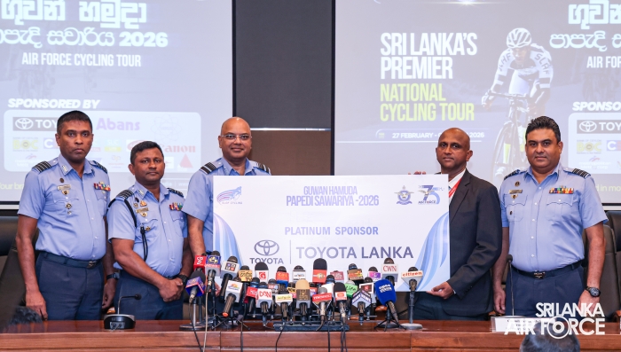 Among those present at the briefing were Secretary Air Force Cycling, Group Captain Chamil Hettiarachchi, Secretary Air Force Sports Council, Group Captain Eranda Geeganage, Headquarters Sports Officer of the Sports Development Department, Mr. DM Anura, Chief Operating Officer of Toyota Lanka (Pvt) Ltd, Mr. Matheesha Samaranayake, Chief Operating Officer of Verus Analytics (Pvt) Ltd, Mr. Vimukthi Chathuranga and General Manager Group Corporate Communications of Abans Group, Mr. Dhianushka Kurukulasuriya.