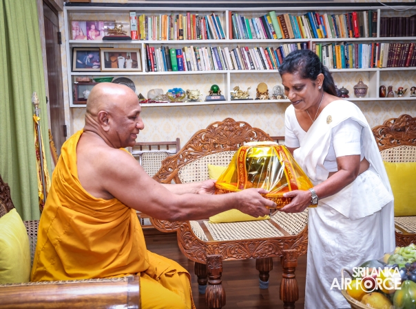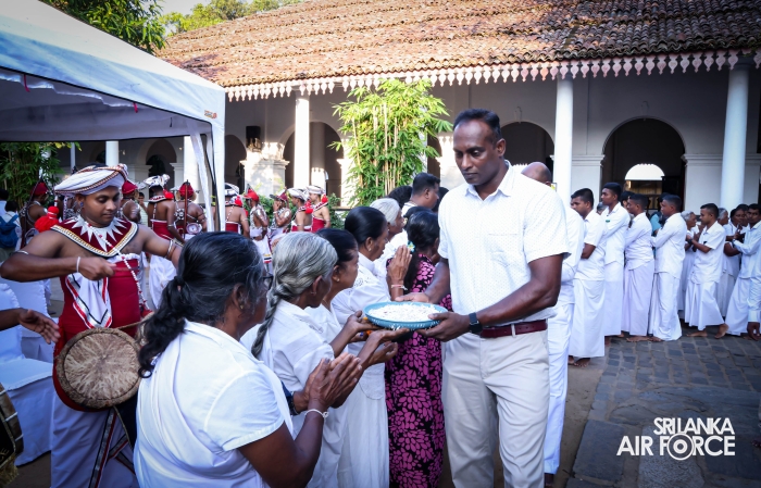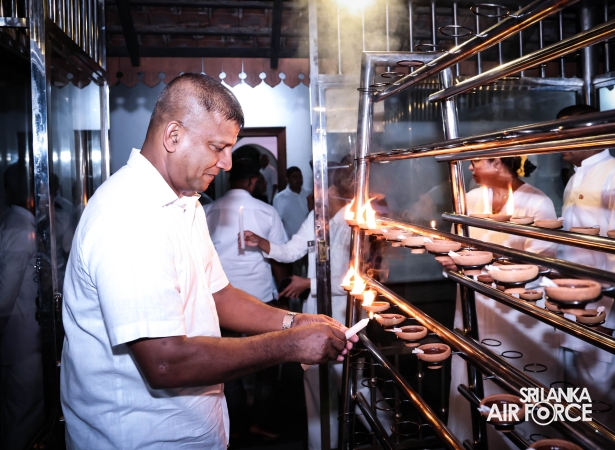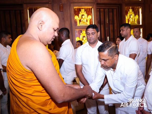 The Sri Lanka Air Force, which is gearing up to celebrate its 75th anniversary as the ‘Guardians of the Skies' conducted the ‘Pichcha Mal Pooja' at Kelaniya Raja Maha Viharaya for the ninth consecutive time. The event was organized under the auspices of the Commander of the Air Force, Air Marshal Bandu Edirisinghe today evening (24 February 2026) by SLAF Headquarters Sri Jayewardenepura to invoke blessings for the SLAF personnel and the entire Air Force. The Chairperson of the SLAF Seva Vanitha Unit, Mrs. Krishanthi Edirisinghe also participated in the event.