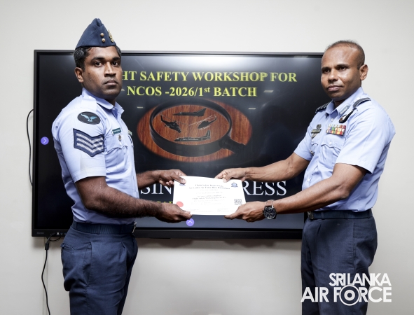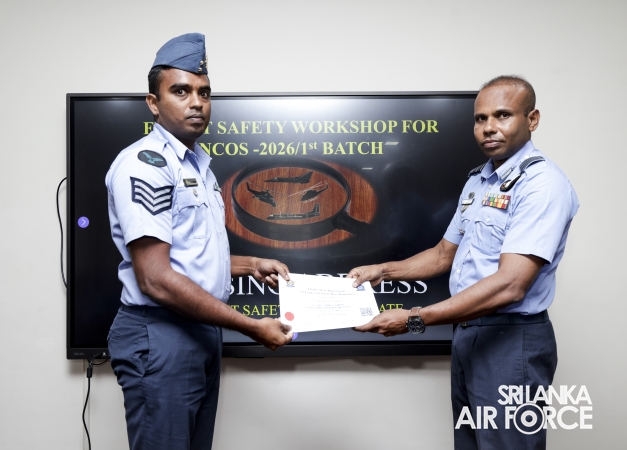 The 22nd consecutive Flight Safety Workshop for Non-Commissioned Officers (NCOs), marking the first batch for 2026, was recently concluded at the No. 61 Flight Lecture Hall of SLAF Base Ratmalana. The five-day programme saw the participation of 36 NCOs representing all Directorates.