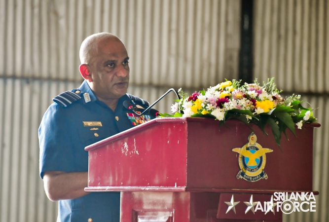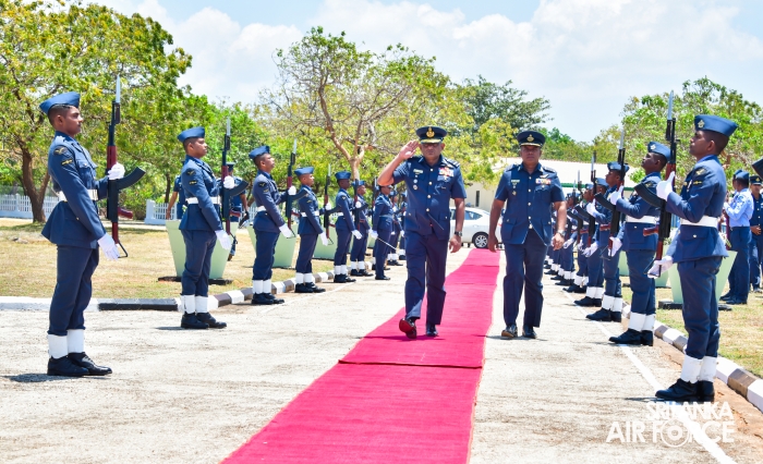 The Commanding Officer of SLAF Station Palaly, Group Captain Suranga Seneviratne, welcomed the Commander upon his arrival and a street line with standard colours was conferred.