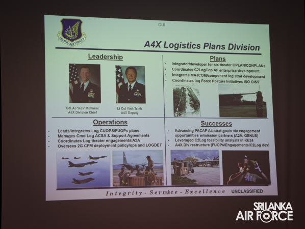 The symposium commenced with opening remarks from Director General Planning, Air Vice Marshal Deshapriya Silva and PACAF Deputy Commander, Air Vice Marshal David Titheridge followed by comprehensive country overview and safety briefing by the Lead Planner of LASS – 26, Wing Commander Kasun Kumara. Over the consecutive three days, participants engaged in a series of in-depth discussions and knowledge sharing sessions covering critical areas of logistics, safety and operational readiness. As such, key thematic areas addressed during the symposium included Humanitarian Assistance and Disaster Relief (HADR) operations with shared experiences from the participants, Acquisition and Cross Servicing Agreements (ACSA) highlighting cooperative logistical frameworks, PACAF A4 (Logistics operations) Leadership perspectives and insights from Integrated Procurement Technologies (IPT). Further, Safety management practices and operational sustainment strategies within both C-130 and fighter aircraft domains were discussed and finally the Country specific briefings were presented by each participating country.