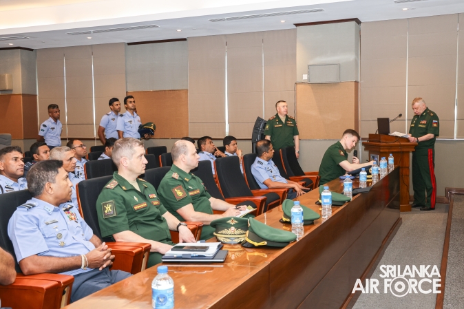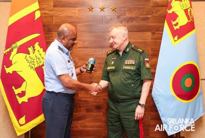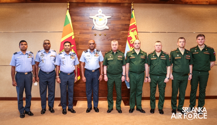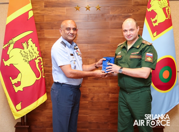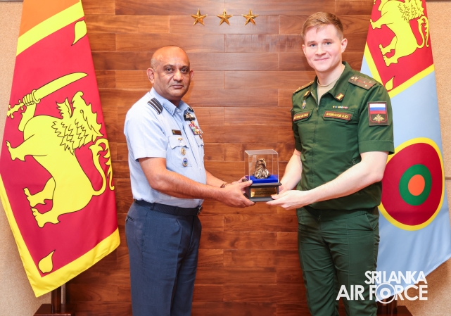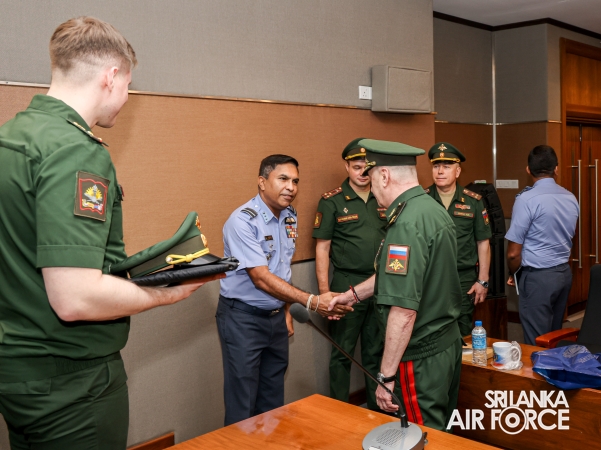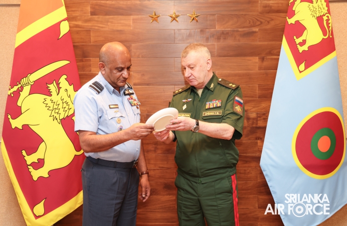 The head of the delegation, Lieutenant General Gleb Voeremin, along with the members, was accompanied by the Military, Air and Naval Attaché of the Embassy of the Russian Federation in Sri Lanka, Colonel Sergei N. Beliankin, when they called on the Commander of the Air Force, Air Marshal Bandu Edirisinghe. Symbolic mementos were exchanged following cordial discussions to mark the occasion.