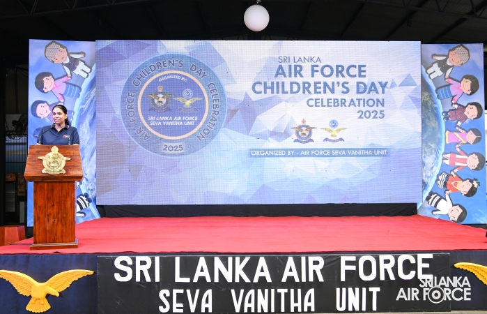 The SLAF Seva Vanitha Unit successfully organized the World Children's Day celebrations for the year 2025 at the 'Pearl Bay' water park in Bandaragama, marking the third consecutive year of this event. The celebrations, held today (04 October 2025), were graced by the Commander of the Air Force, Air Marshal Bandu Edirisinghe and the Chairperson of the SLAF Seva Vanitha Unit, Mrs. Krishanthi Edirisinghe, as the Chief Guests.