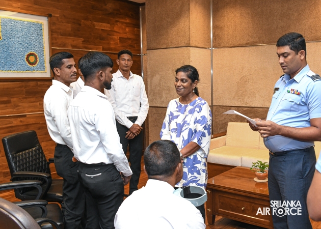 The financial assistance was ceremonially awarded today (21 January 2026) by the Chairperson, Mrs. Krishanthi Edirisinghe, with the participation of the President of the Selection Board, Air Vice Marshal Gladwin Atapattu, Secretary SLAF Seva Vanitha Unit, Wing Commander Lilangi Randeni and Treasurer of the Seva Vanitha Fund, Squadron Leader Vimukthi Paragahawaththa.